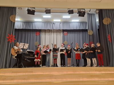 Rahvatantsurühm ühe mehega esines Oru külakeskuse jõululaadal. Urve, 2025