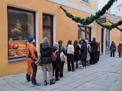 Voorimehe tänava Karu talu kaupluses ees on pühade eel poesaba lausa tänaval. Urve, 2025