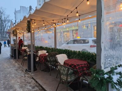 Jaanuarikuine tänavakohvik Tallinnas Vana-Viru tänaval. Urve, 2026