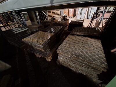 Muinsusliku järelevalve seminari ekskursioon Krulli kvartali tööstushoonetesse. Muinsusdetailidena on ladustatud taaskasutuseks nõukogudeaegsed malmist põrandaplaadid. Urve,…