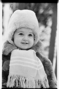 Väikelaps talverõivastuses. Foto: Ella Haldre. ERM Fk 3108: 548. Ella, 1974