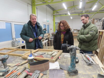 Ehitusjärelevalve, arhitekt ja ehituse projektijuht Puitonis akende restaureerimisega tutvumas. Urve, 2025