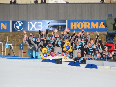 Spordifänn lippudega Tehvandi staadionil BMW IBU laskesuusatamise karika etapil. Urve, 2026
