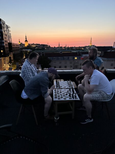 Mängisime sõpradega minu kortermaja katusel malet.