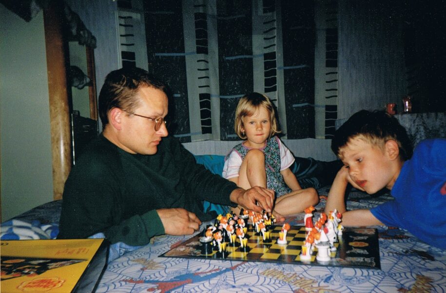“Chupa Chups”-iga võidetud malemäng. Maletavad isa Aivar ja poeg Madis, tütar Maris jälgib mängu. Aasta on 1998. Tiina, 1998