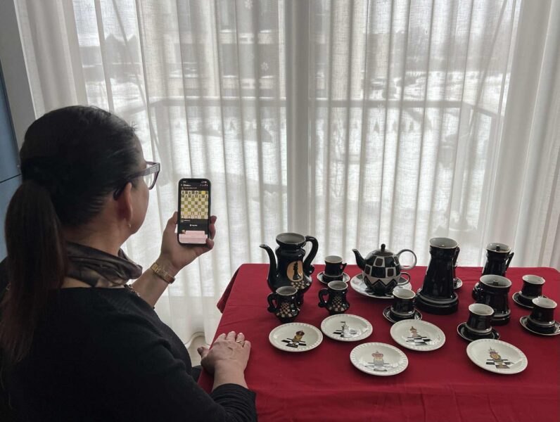 Svetlana Haapsal mängib telefonis malet ja imetleb oma maleteemalist portselanikollektsiooni❤️♟️ Svetlana, 2026