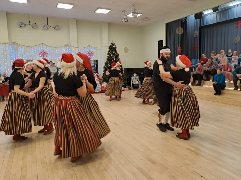 Rahvatantsurühm ühe mehega esines Oru külakeskuse jõululaadal.