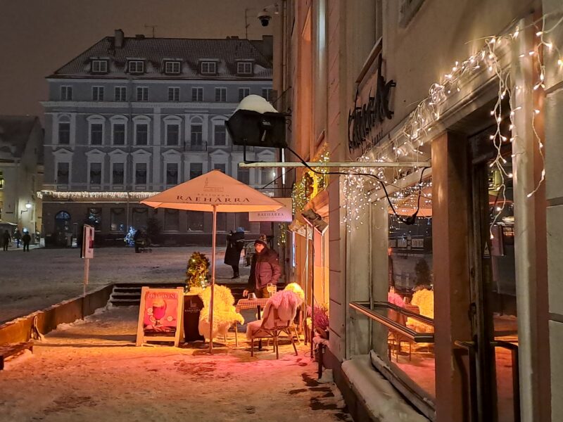 Tänavakohvik jaanuaris. Külastajaid meelitatakse sooja valgusega.
